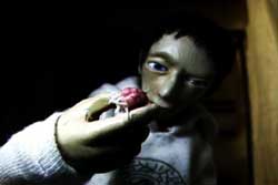 パペット・アニメーションのダイナミクス アニメーションの撮影で最もテクニックが必要とされるパペット(人形)アニメーションの日本の若手作家の良作を特集したプログラム。歴史的に見れば、人の形をしたものが自由自在に動くという古来からの夢への希求が、蒸気や歯車等の精巧なからくりを駆使したオートマトン(自動人形)を生み出したわけだが、現代は仮現運動という視覚のからくりを動力とするパペット・アニメーションとしてその夢は実現されている。 80年代後半、ヤン・シュヴァンクマイエルやブラザーズ・クエイ、イジィ・バルタなどの作品が日本に紹介されて以来、日本におけるパペット・アニメーションの人気は急速に高まり、イメージフォーラム・フェスティバルにもフィルムやビデオで制作された作品が数多く出品された。この人気は現在でも衰えず、同時にいまだに彼らの大きな影響下にあるともいえるが、近年の作家は、自己のカリカチュアとしてパペットを使う傾向が見られる。また、手法的には撮影時のモデル・アニメーションと、それを取り込んだ画面によるCGとしてのアニメーションを実に巧妙に組み合わせている点が新しい。アナログやデジタル、2Dや3Dを必要に応じて使い分け、なおかつ質感の違いを感じさせない。(澤隆志) 作品コメント カラエナ●私達はこの作品を見た人が日常と非日常というものは一体なんだろう、と考えてもらえる様なものを目指した。我々の普段知っている(つもりになっている)日常や非日常というものは決して普遍的ではなく、その境界は危ういバランスの上に成り立っている。その点をテーマにし、私たちが生れたときから見ているTVによって刷り込まれた物語の文法を利用しつつ、徐々に物語そのものを壊してしまうような作品を制作した。(池田泰教+岩田勝巳) 陰 隠輪花●東洋には、世界には陰と陽の相反するもののバランスで成り立っているという思想がある。この作品は、人間の中に潜む意識と無意識の世界の交錯、虚と実、男と女、人工と自然、破壊と構築などといった対になるイメージがそれぞれ、物語における一人の男の浄化・再生の作用、それに反する消去の作用と結合する。そして、それらは反比例的に高まり、最後には逆転するという矛盾も表現した。それは、まるでメビウスの帯の面を指でなぞるかの様でもある。(柏尾和直) certain night, certain place (the record of a man) ●この作品は、アニメーションを用いた彫刻作品である。主人公は鉄製の人間である。鉄が錆びていく様子を映像にし、主人公の置かれた非常な状況と刻々と過ぎてゆく時間を表現した。限られた空間の中で、避けられない災難にあった時、その人はできる限りの抵抗を試みるが...。抵抗をやめ災難を受け入れる時その人は何を失い、何を手に入れたのか?(大橋英子) 阿片譚●1930年代の上海。烟館の一室で男が煙を食している。妄想する男を軸に「落語」を演じてみたかった。(倉重哲二) 明かりの中の会話●私は以前から舞台の袖や奈落や簀の子に隠れている誰かを探し続けている。その誰かは私たちに見えない様にこちらを観察し、そして私たちを操っている様に思える。自分が操っていると思っていた物に実は、操られていたとしたら..。それを人間と人形で表現してみました。(神山千恵) 玉蟲少年●幻の昆虫「時計蟲」を捕まえることを夢見る少年のファンタジー・ムービー。「トワイライトに輝く夕刻。教も"彼"を探しに歯車山へでかけました。やっと見つけた"彼"を追いかけ、迷い込んだ空間は、実は"彼"の体内だった」。無限に続く円環構造と、少年の夢を2重螺旋で絡めたパペット・ アニメーション。(岩井天志) |