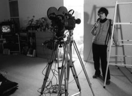 15日間●1979年11月19日から12月3日までの15日間、自宅の片隅に固定したカメラの前で「私」は日々の生活や映画について語る。作者が苦痛を伴いつつ毎晩行うこの記録の儀式は、カメラ=他者という視線を「意識」しすぎて(作者のメディア意識そのものの反映)カメラの前に座る私の身体を硬直させ思考をもつれさせる。そうした有り様を密室を覗くように見ている我々観客の不自然さ、居心地悪さもまた異様である。フィルムという鏡像をとおして自画像を描いてきた鈴木志郎康のスタイルは、ここにきてカメラの前に直接自分が立ってしゃべり始めるという短絡に行き着く。カメラの前で最初は背を向けるようにして語っていた「私」は次第にカメラを直視するようになっていく。