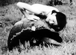 このプログラムではイメージフォーラムのストックしている日本作品の中から、エポックメーキングな長編の実験映画作品を特集。劇映画ともショートフィルムとも異なる構造を持つ「特別な時間」に焦点をあてた。 作品コメント 石の詩●対象が<石>、しかもそれを<写真>で表現するという、ドキュメンタリーにとって前代未聞の枷は、たいがいの監督なら、まずムリとあきらめてしまうところだ。が、この作家は、動きのないものに動きを与えるアニメーションの方法をもって、どんなに激しく動く対象に迫った映画よりも、はるかに鋭い<動き>の感覚を作りだしたのである。動きを凍結された<写真>は、緩急自在に動くカメラの抑揚と、ほとんど軋みにまで分解されたサウンドによって、見るものを、息詰まるような緊張の中に誘いこむ。映画に対するこの作家の、怜悧な計算とコントロールがここに見事に結実している。(「松本俊夫の映画の果てしない彼方へ」かわなかのぶひろ '75松本俊夫映像回顧展カタログより) 比呂美−毛を抜く話●前の年1980に、詩人の正津勉さんを映画に撮って、若い女性詩人として売り出し中の伊藤比呂美さんをフィルムに撮っておこうと思った。そこで、比呂美さんといろいろ話しているうちに、「毛を抜くのが大好き」というので、聞くと、話の内容が生命感というところに触れてくる。それを話しているところを撮ろうと決めた。彼女は自分の毛を抜くとき、抜く自分と抜かれる自分の両方を自覚して興奮してくるという。皮膚が問題だという。撮影していて、彼女の話が立派な身体論になっているのに驚いた。導入部に、ヒカシュウの曲を借りた。制作1981年。作者、46歳。 (鈴木志郎康ウェブサイトより www.catnet.ne.jp/srys/) 王国●『無人列島』を撮り終えた時点で3部作にしようと思った。製作費等の問題を含めた様々な 処で、自分達の力の無さを痛い程知らされたぼくは、続け様にあと2本の映画を創って、それ等がそれぞれの間にある一定の角度を保つ独立した作品でありながら、且つ合体したときには壮大な1本の映画にもなり得る様な3本の映画をと、考えたのである。連帯の中の個をテーマとした『無人列島』が「人の巻」なら、血から地へと辿る『GOOD-BYE』は「地の巻」、そしてこの時間と格闘する『王国』は当然「天の巻」となって、3部作で<微笑う銀河系>となる構造だ。(金井勝、「微笑う銀河系」れんが書房新社刊より) HEAVEN-6-BOX●『HEAVEN-6-BOX』の映像は、論理では決して解析できない霊性に満ち溢れている。大木裕之は言霊ともいうべき言葉のダブルミーニングの不思議な力を駆使し、巫女のように神秘的な映像を紡ぎあげた。観るものが、映像の力によって作者とひとつに結ばれることによってHEAVENの世界へとたゆたうこと。それが、この作品の最大の魅力と言える。(「HEAVEN-6-BOX」 カタログより) 毛髪歌劇● これが、インディーズ・フィルムだ!! これは、強烈な女を強烈に追いかける愛の物語。裏ポルノじゃないよ。歌の抑揚が物語を動かして、ドラマティックに展開するロマン主義の映画。手持ちカメラは手の延長、眼の延長、耳の延長だ。映画そのものに疑いをかけ、映画を破壊するアナーキストの 映画なのだ! フィルムに直接毛髪などを貼り付けているが、これはお客様への一種のサービスであって、他意はありません。(帯谷有理、「ヴェリズモからアシッドへ」1998上映会チラシより) 旅の繪●1985年、日本の実験映画の上映ツアーを行ったとき、旅をしながら作品を制作しようと考えた。それがこのシリーズの始まりだった。アイデンティティのない場所で何を撮るか真剣に悩んだ。TVカメラマンだった頃はそんな悩みはなかった。けれどもこの時は、個人で映画を手がけることの意味をとことん反芻した。そのあげくに生まれたのが『空の繪』(1985年版)だった。当初はもっとシンプルな構造だったが『時の繪』『夢の繪』を経て成長した。(かわなかのぶひろ、「イメージフォーラム・フェスティバル2000」カタログより) |