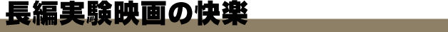 長編実験映画の快楽 このプログラムではイメージフォーラムのストックしている日本作品の中から、エポックメーキングな長編の実験映画作品を特集。劇映画ともショートフィルムとも異なる構造を持つ「特別な時間」に焦点をあてた。 薔薇の葬列●「ジュネ」のオーナー権田(土屋嘉男)とエディ(ピーター)のめくるめく情事で映画は始まる。二人の密会を権田の愛人でもある「ジュネ」のママ、レダ(小笠原修)が見ていた。そんなある日、母の情事を目撃したエディは母を発作的に殺してしまう。ベトナム戦争帰りの麻薬の売人トニーと一夜を共にするエディ。フーテンのゲバラ (内山豊三郎)たちとのマリファナと乱交パーティの世界に引き寄せられていくエディ。冒頭にボードレール『悪の華』の一節「われは傷口にして刃、いけにえにして刑吏」という字幕が掲げられるように、ことさらに戯画化されて描かれたこの映画は、悲劇の不可能な時代に突きつけた監督松本俊夫の悪意の刃なのかもしれない。1960年代末期の新宿、六本木、原宿を舞台に、ピーターとゲイボーイたちのコミカルなドラマは血の惨劇へと変わる。 時が乱吹く●短歌篇、俳句篇、詩篇の三つのオムニバスで描く映像の詩歌。『夢走る』では映像制作を手作りのおでんになぞらえる。主演者は城之内元晴。この後、映画作家でもある城之内は交通事故で命を落としてしまう。金井勝は以後の2篇を城之内への追悼としての作品に方向転換した。俳句篇『一本勝負の螽蜥』は400フィート11分ワン・ショットの作品。金井自身が自宅を妄想空間に変化させる。最後の詩篇『ジョーの詩が聞こえる』では、城之内の映像作品『新宿ステーション』を引用しながら、金井勝の自宅に城之内の肉声が宿る劇的なラストを迎える。 15日間●この作品は、『写さない夜』を撮って、格好を付けている自分の姿しか写ってないと感じて、もっと自分自身を暴露するという意図で作った。作ろうと思ってみたものの、いざ始めようとすると怖じ気ついて、カメラのアンプの故障と思い込み二日延ばしで始めた。しかし、口の動きと音声が合わないと理由を付けて、カメラの正面に向き合うのを避けて、後ろ向きでの撮影となった。一週間撮って、そのフィルムのラッシュを見て、見たこともない自分の姿に心が動転。更に撮り終わってからも、フィルムを見ることも出来ず、ただ機械的に編集した。出来上がっても、作品として公開して意味があるのかどうか判断できずに、かわなかのぶひろさんと中島崇さんに見て貰い、二人の反応を見てようやく公開する気になった。その後、このフィルムの「自分」と、ビデオで撮影した上半身裸体で、うそ、何言っての馬鹿、違う、とかの否定の言葉ばかり述べる「自分」と、生身の「自分」との三者鼎談というか、話し合いというか、とにかく「フィルム」と「ビデオ」と「生身」とが言葉を交わすパフォーマンスを行い、このフィルムの「自分」を抜けることができた。自分なんてあてにならいよ、という考え方の出発点に立てたというわけ。こういうことは誰かがやっておかなければいけない、それを自分がやったという自負もある。制作1980年。作者、45歳。(鈴木志郎康ウェブサイトより http://www.catnet.ne.jp/srys/films/15days/15days.html) HEAVEN-6-BOX●『HEAVEN-6-BOX』の映像は、論理では決して解析できない霊性に満ち溢れている。大木裕之は言霊ともいうべき言葉のダブルミーニングの不思議な力を駆使し、巫女のように神秘的な映像を紡ぎあげた。観るものが、映像の力によって作者とひとつに結ばれることによってHEAVENの世界へとたゆたうこと。それが、この作品の最大の魅力と言える。(「HEAVEN-6-BOX」 カタログより) 毛髪歌劇● これが、インディーズ・フィルムだ!! これは、強烈な女を強烈に追いかける愛の物語。裏ポルノじゃないよ。歌の抑揚が物語を動かして、ドラマティックに展開するロマン主義の映画。手持ちカメラは手の延長、眼の延長、耳の延長だ。映画そのものに疑いをかけ、映画を破壊するアナーキストの映画なのだ! フィルムに直接毛髪などを貼り付けているが、これはお客様への一種のサービスであって、他意はありません。(帯谷有理、「ヴェリズモからアシッドへ」1998上映会チラシより) 私小説●このショットの後にどのショットをつなぐのかということに、いつも悩んでしまう。描くイメージははっきりしているのに、それを叙述する文体がいまだ掴めない。物語という叙述方法を採り入れれば解消するだろうが、それによって映像の言葉が脆弱になることには耐えられそうにない。そんな思いを絶えず抱きながら1987年から1992年にかけて手がけてきた『私小説1-6』がこの作品のベースとなっている。作品で描こうとしていることをあえて言葉にするならば、"記憶の軌跡"である。しかし具体物を撮るカメラでこれを描くのはとても難しい。(かわなかのぶひろ イメージフォーラム・フェスティバル1996カタログより) |