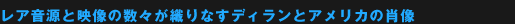 目を見張るのは、数々のレア音源、資料映像とインタビューに登場する豪華な顔ぶれ。友人が録音したハイスクール時代の歌や、路上で演奏する若きディランの初々しい映像をはじめ、63年のニューポート・フォークフェスティヴァルでのピート・シーガーやオデッタとの共演による「風に吹かれて」、それから、「ユダ!」と叫ばれて逆に「おまえは嘘つきだ」と応酬する伝説の英国ツアーの「ライク・ア・ローリング・ストーン」。そしてジョーン・バエズやスージー・ロトロ、メイヴィス・ステイプルズなどのディランを取り巻く女性たちや、ピート・シーガー、デイヴ・ヴァン・ロンク、アル・クーパーといったディランの音楽に欠かせない人々へのインタビュー。あるいは、次作を朗読する、アレン・ギンズバーグやジャック・ケルアックなどの映像。記者たちの質問に反論するディランの神経質な表情……。そんな何百時間にも及ぶ貴重な資料映像の一部と10時間を超すディランへのインタビューから、この映画は構成される。それはボブ・ディランの肖像であるとともにアメリカ合衆国の肖像でもあるだろう。