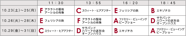 | 10月23日(土)18:45の回 ゲスト: 柳下毅一郎 氏(映画評論・特殊翻訳家) 10月25日(月)18:45の回 ゲスト: ピアース・ハンドリング 氏(トロント国際映画祭ディレクター) 10月28日(木)18:45の回 ゲスト: 西嶋憲生 氏(映像批評家)+滝本誠 氏(美術・映画評論) ※トーク終了後、上映 |